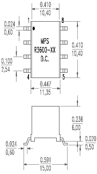 Dimensions Unless otherwise specified, all tolerances are: inch: .XX : ± 0.015 .XXX : ±0.004 mm: X,X : ± 0,38 X,XX : ±0,10 Product performance is limited to specified parameter. Data is subject to change without prior notice. |